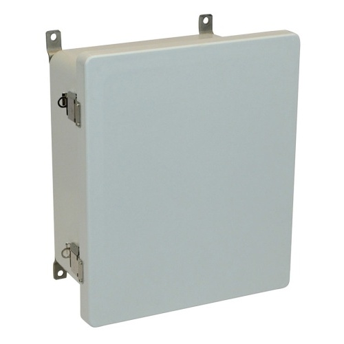 Allied Moulded AM1648L ULTRAGUARD Fiberglass reinforced polyester Type 4x Junction Box Enclosure 16" x 14" x 8" (HXWXD) Inside Dimension. Opaque cover hinged with lockable clamp latch. 316 Stainless Steel hinge, latch, external hardware and plated carbon steel internal hardware.