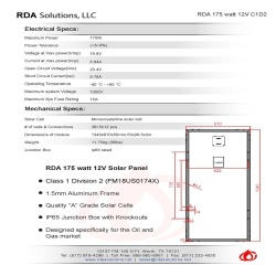 RDA RDASP-175-12V Solar Panel 175W 12V Class 1, Div 2