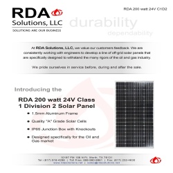 RDA Solar Panel RDASP-200-24V Solar Panel 200W 24V Class 1, Div 2 200W 24V Class 1, Div 2 Off Grid Solar Panel