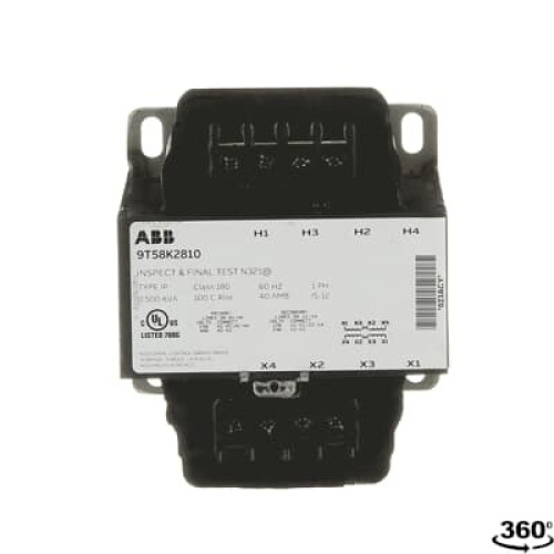 ABB 9T58K2810 - ABB's Type IP transformers are versatile core and coil units designed for machine tools, industrial control, panelboard, and general-purpose applications. They feature welded cores and epoxy encapsulation for superior electrical performance and protection against external elements. Type IP units conform to NEMA ST20 standards, with various insulation classes and frequency options. They offer voltage regulation, multiple secondary connection possibilities, and optional integral fusing. These transformers are compact and designed for easy installation, often fitting competitor mounting footprints. Please consult your local GE Sales Office for detailed technical information.