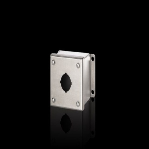 Rittal 8017725 Pushbutton boxes PB Stainless steel 3.23"H x 2.72"W x 3.46"D. This enclosure protects equipment from dirt, dust, sprayed water, oil, and coolants