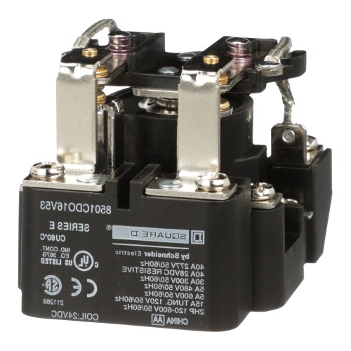Schneider 8501CDO16V53 Square D Power Relay with 24 VDC Input Coil Voltage, 277V Output Load Voltage, 40A Load Amperage. DPDT with Panel Mount. Ideal for controlling single phase motors, pumps, conveyers, electric heaters and other applications.