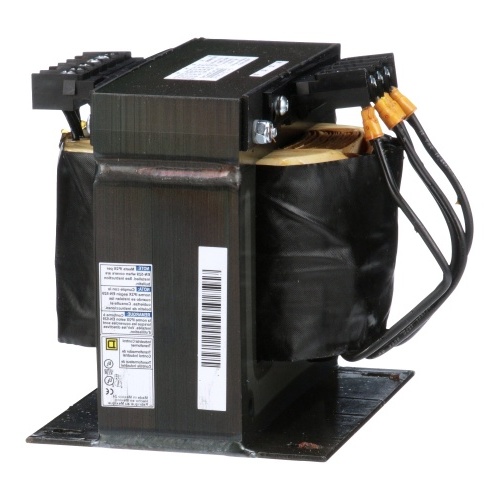 Square D 9070T1000D50 Class 9070 Type T Transformer 1000 VA Output (VoltAmp). 240/416/480/600 VAC to 99/120/130 VAC OR 230/400/460/575 VAC to 95/115/125 VAC OR 220/380/440/550 VAC to 90/110/120 VAC OR 208/360/416/520 VAC to 85/104/115. 4.51" x 5.25" x 6.3" (HxWxD). Low impedance windings for excellent voltage regulation. Accomodates high inrush currents from relays, starters, solenoids, contactors etc.