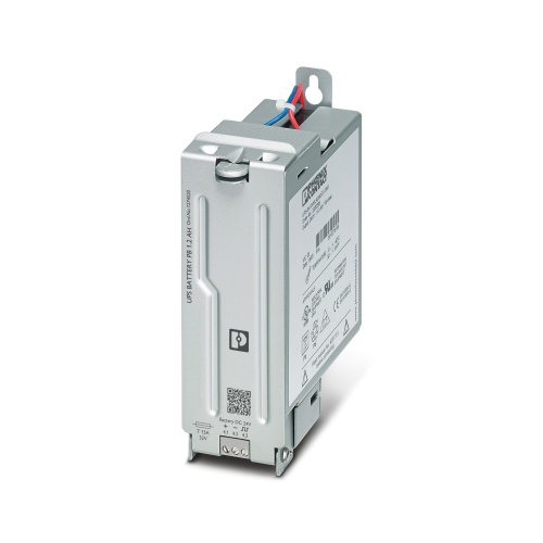 Phoenix Contact 1274520 The battery module is a device that houses a battery, specifically a type of sealed lead acid battery known as VRLA-AGM, which operates at a 24V DC voltage output of 1.2Ah capacity. It is equipped with automatic detection and communication capabilities, allowing it to seamlessly interact with the QUINT UPS-IQ system.