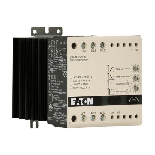 Eaton S701E25N3S - Mini soft starter, With DC injection brake, 25A, 400-480V line voltage, 24-240 Vac/dc control voltage, 11 kW