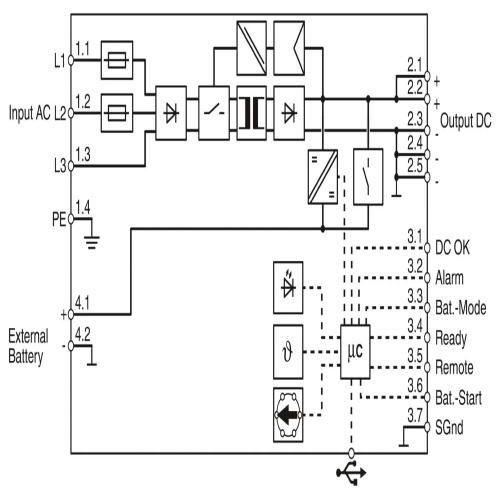 Phoenix Contact 2906367 The TRIOS is a compact power supply unit (PSU) that combines the functionality of a traditional UPS with an integrated power supply, allowing for easy installation on a DIN rail. It features multiple connections, including USB and Modbus/RTU ports, making it suitable for various applications. The device accepts a 3-phase power input and outputs 24V DC at a maximum capacity of 20A.