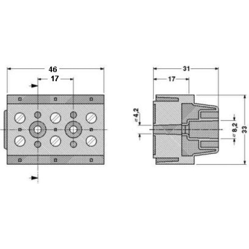 G 10/ 3 Phoenix Contact 2716716 Device Terminal Block - G 10/ 3 Screw Connection 1 Level 46 mm with 6 Connections. Not Grounded, Not Fused Gray. 800 Volt, 57 Amp max rating.