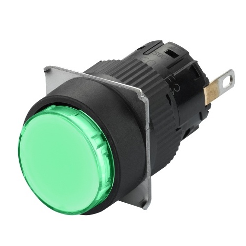 Schneider Electric XB6EAV3BP Harmony 16 mm Round Green Plastic Illuminated Pilot Light Monolithic Complete Product is made for small areas and is designed to be simple and flexible with a Fast Connector Socket and a Steady signal. Uses 24 VDC and is IP 65 and UL 508 rated.