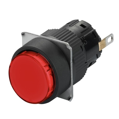 Schneider Electric XB6EAV4BP Harmony 16 mm Round Red Plastic Illuminated Pilot Light Monolithic Complete Product is made for small areas and is designed to be simple and flexible with a Fast Connector Socket and a Steady signal. Uses 24 VDC and is IP 65 and UL 508 rated.
