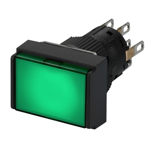 Schneider Electric XB6EDW3B2P Harmony 16 mm Rectangular Green Plastic Push Button that is Illuminated with a Flush profile. Uses 24 VDC and is a Monolithic Complete Product and has 2 C/O Fast Connector Sockets and is IP 65 rated and UL 508 certified. (MUST BUY IN PACKS OF 5)