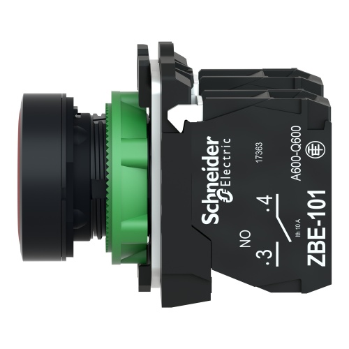 Schneider Electric XB5AA45 Harmony 22 mm Round Red Plastic, Dark gray plastic Non-Illuminated Push Button Modular Complete Assembly with a Flush profile is made of high quality material and is designed to be simple and flexible with Screw Clamp Terminals. Has 1 NO + 1 NC contacts with Spring return functionality. This product is IP 69 and UL 508 rated and is Unmarked.