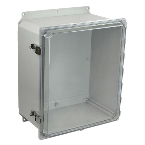 Allied Moulded AMP1648CCLF POLYLINE AMP Series JIC Size Polycarbonate Enclosure with Clear Covers 16" x 14" x 8" (HxWxD) Approx. Inside Dimensions Stainless Steel Lockable Snap Latch Hinged Cover.