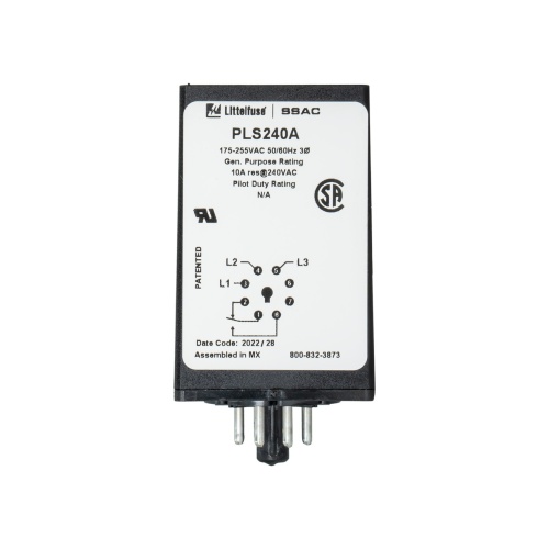 Littelfuse PLS240A - PLS Series – Voltage Monitor Series - 175-255 Volt - Plug-in socket - 120 and 240 VAC: 10 A resistive @ 240 VAC; 380 and 480 VAC: 8 A resistive @ 240 VAC