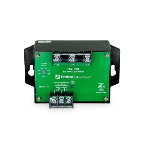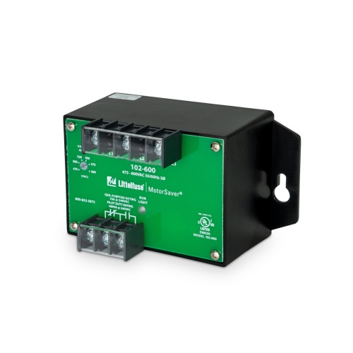 Littelfuse 102600 - 102A Series – Three-Phase Voltage/Phase Monitor Series - 475-600 Volt - Surface mountable #8 screws - Pilot Duty: 480 VA @ 240 VAC; General Purpose: 10 A @ 240 VAC