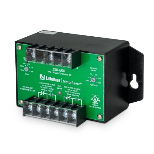 Littelfuse 250600 - 250A Series – Three-Phase Voltage/Phase Monitor Series - 500-600 Volt - #8 screws - Pilot Duty: 480 VA @ 240 VAC; General Purpose: 10 A @ 240 VAC