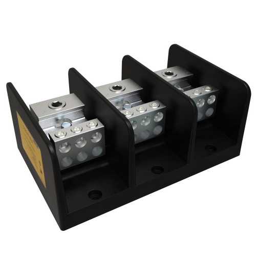 Ilsco PDB-16-350-3 - Power Distribution Block, Dual Rated, Line Conductor Range 350-6, Load Range 2/0-14, 1 Port Per Pole Line Side, 6 Ports Per Pole Load Side, 3 Pole, UL, CSA