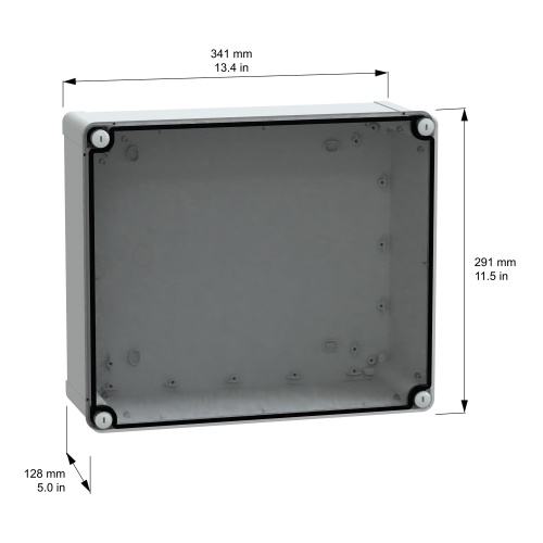 Schneider Electric NSYTBP342912T - Polycarbonate - Captive screw flat outside sealed area - IK08 - IP66 - 13.43" x 11.46" x 5.04" (HxWxD)