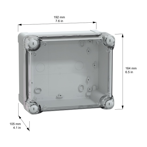 Schneider Electric NSYTBP191610HT - Polycarbonate - Captive screw flat outside sealed area - IK08 - IP66 - 7.6" x 6.46" x 4.13" (HxWxD)