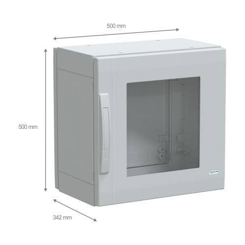 Schneider Electric NSYPLA553TG - Thalassa PLA, Polyester, 1 Door, Transparent front, Rear/Front Accessibility, Reversible 120° Opening, 2 points lock, 5 mm double-bar, NEMA 1/3S/12/13/5/3/3X/3R/2 - 19.7" x 19.7" x 12.6" (HxWxD)