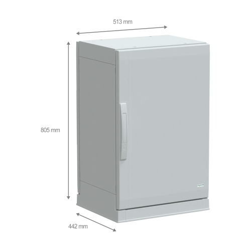 Schneider Electric NSYPLAZ754G - Thalassa PLA, Polyester, 1 Door, Solid front, Front/Rear/Bottom Accessibility, Reversible 120° Opening, 2 points handle lock, 5 mm double-bar, NEMA 3/3S/13 - 29.5" x 19.7" x 16.5" (HxWxD)