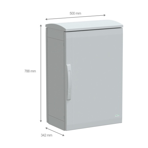 Schneider Electric NSYPLAT753G - Thalassa PLA, Polyester, 1 Door, Solid front, Top/Rear/Front, Reversible 120° Opening, 2 points handle lock, 5 mm double-bar, IP44 - 29.5" x 19.7" x 12.6" (HxWxD)