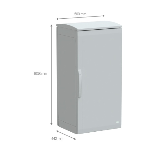 Schneider Electric NSYPLAT1054G - Thalassa PLA, Polyester, 1 Door, Solid front, Front/Top/Rear Accessibility, Reversible 120° Opening, 4 points lock, handle with 5 mm double bar insert, IP44 - 39.4" x 19.7" x 16.5" (HxWxD)