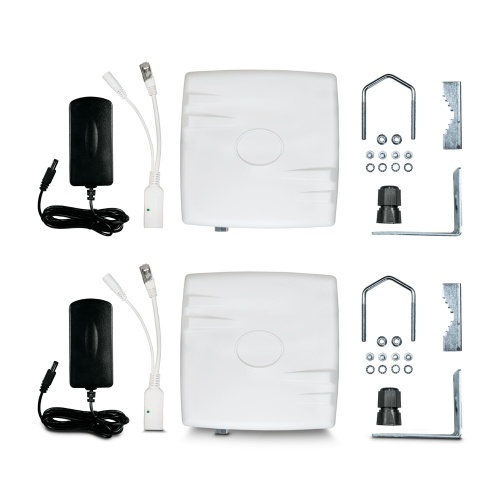 Phoenix Contact 1194423 A pre-configured point-to-point Ethernet bridge designed specifically for the U.S. and Canada markets is available with internal antennas suitable for pole mounting. This device features IP67 rating, supporting wireless Ethernet communication at speeds of up to 300 Mbps on a frequency of 5 GHz, along with RJ45 connections for wired connectivity using 10/100/1000 Mbps standards. It also utilizes passive PoE power, requiring DC voltage between 8-30 volts for operation.