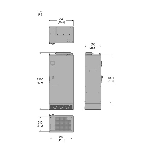 The enclosure is floor standing, allow cable entry from top or bottom and is delivered in RAL7035 light grey