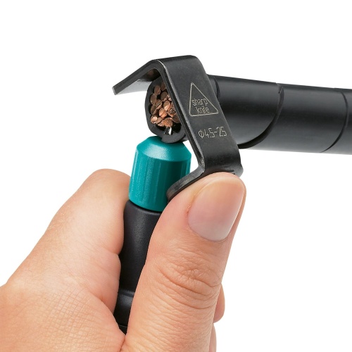 Phoenix Contact 1212161 A stripping tool designed for removing cable insulation is available with a pivoting blade that can make precise cuts along the diameter of cables ranging from 4.5 to 40 mm in size, with the ability to handle up to 4.5 mm of insulation thickness, ideal for various cutting applications.