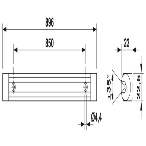 Phoenix Contact 2702478 A 24V DC LED machine light has a 95° vertical and 105° horizontal beam angle, measuring 896mm in length, featuring an IP67 degree of protection and is fully adjustable with included mounting accessories.