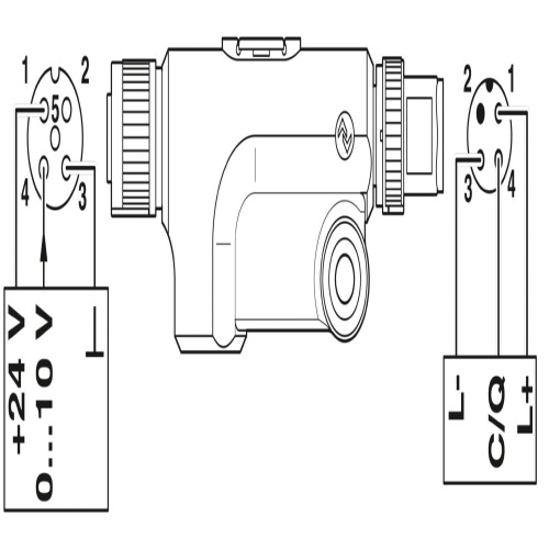 Connection to an IO-Link master with M12 connector (A-coded, 4-pos.)