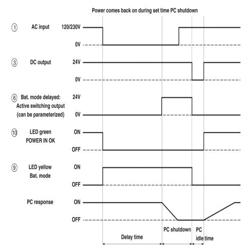 Time-saving – when the supply voltage is restored, the industrial PC starts automatically