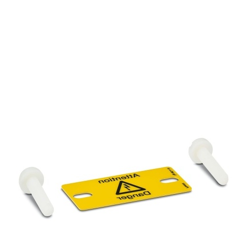 Phoenix Contact 1004238 This warning label features an orange plate with a lightning flash symbol and a warning message in English. It is designed to be plugged into a terminal block with a specific width of 14mm and diameter of 0mm, and comes with a single individual label.