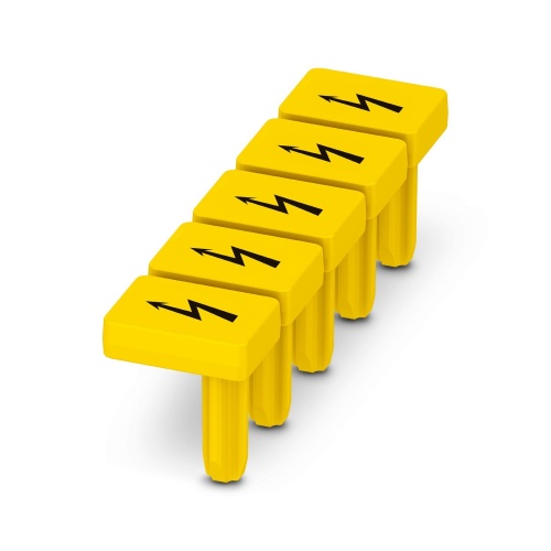 Phoenix Contact 1029026 A warning label featuring a lightning flash symbol and is attached to a plug-in terminal block with a width of 5.2mm.