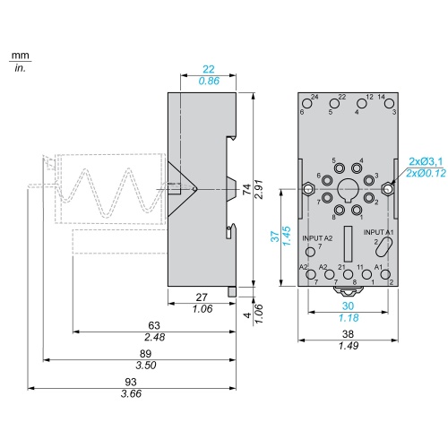 Schneider Electric RUZC2M Zelio, plugin relay socket, mixed contact, 10 A, 250 V, octal connector, for RUMC2 relays