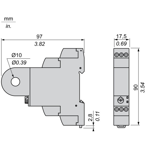 Schneider Electric RM17JC00MW Modular current control relay, 8 A, 1 CO, overcurrent function, 250 V AC/DC